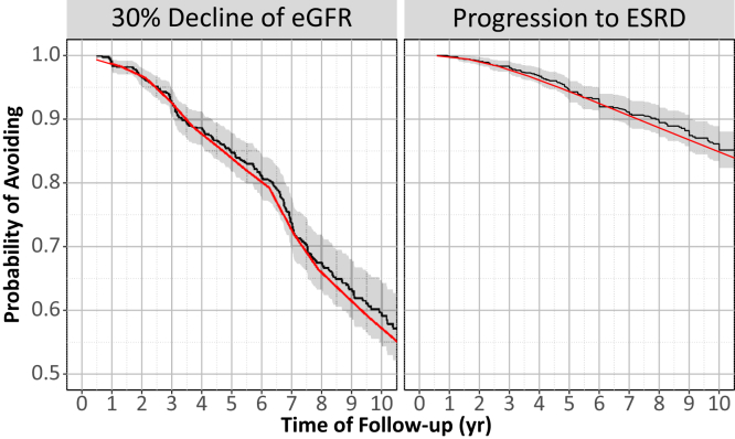 Number of Groups: 641 This is the second part of Qualification of Kidney Volume as a Drug Development Tool: Part 1. Here, I will continue covering the analysis framework and more specifically the joint modeling of longitudinal total kidney volume (TKV) and the outcomes of interest which were 30% decline of glomerular filtration rate (eGFR) or end-stage renal disease (ESRD) to ultimately qualify the model simulations as a drug development tool (DDT) for trial enrichment in patients with autosomal dominant polycystic kidney disease (ADPKD). Since the data is not public I will be using published outputs and share relevant code that can be applied in real-life analysis. For the record, here is a quote from the FDA Biomarker Qualification Review for Total Kidney Volume: “Based upon consideration of the strengths and limitations of the data, the Biomarker Qualification Review Team (BQRT) recommends that Total Kidney Volume (TKV) determined at baseline, in combination with patient age and baseline eGFR, can be qualified as a prognostic enrichment biomarker for autosomal dominant polycystic kidney disease (ADPKD) subjects at high risk for a progressive decline in renal function, defined as a confirmed 30% decline in eGFR.”
