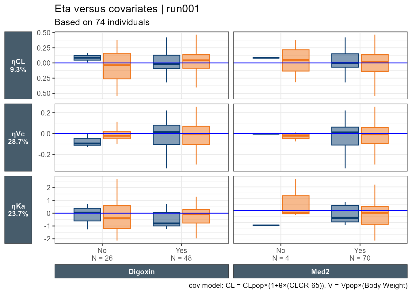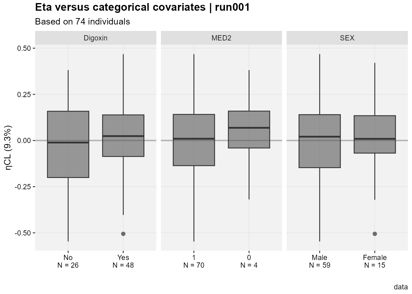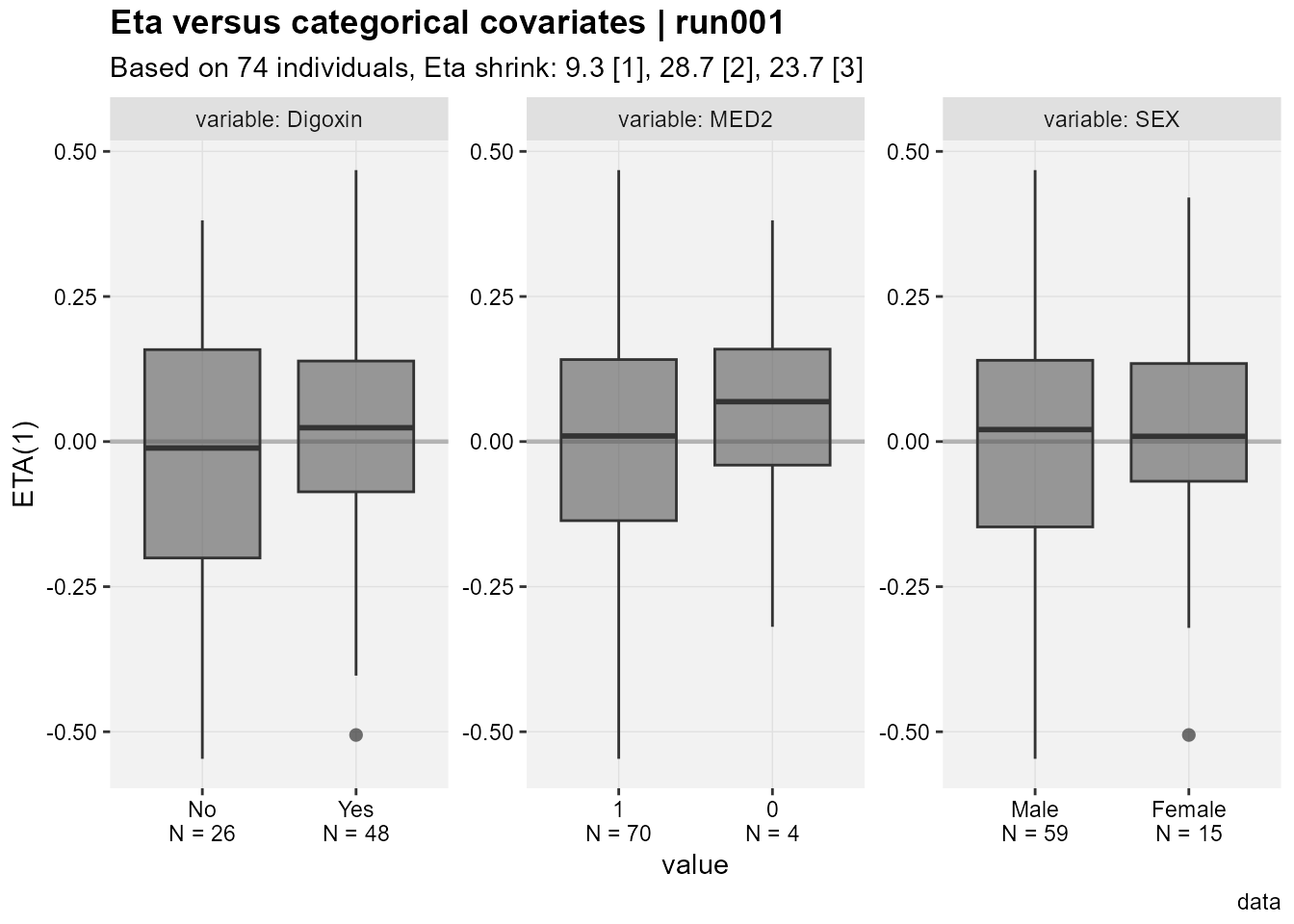 A nice touch seen in the Eta versus categorical covriates plot is that out of the box we have the N by category shown on the x axis.