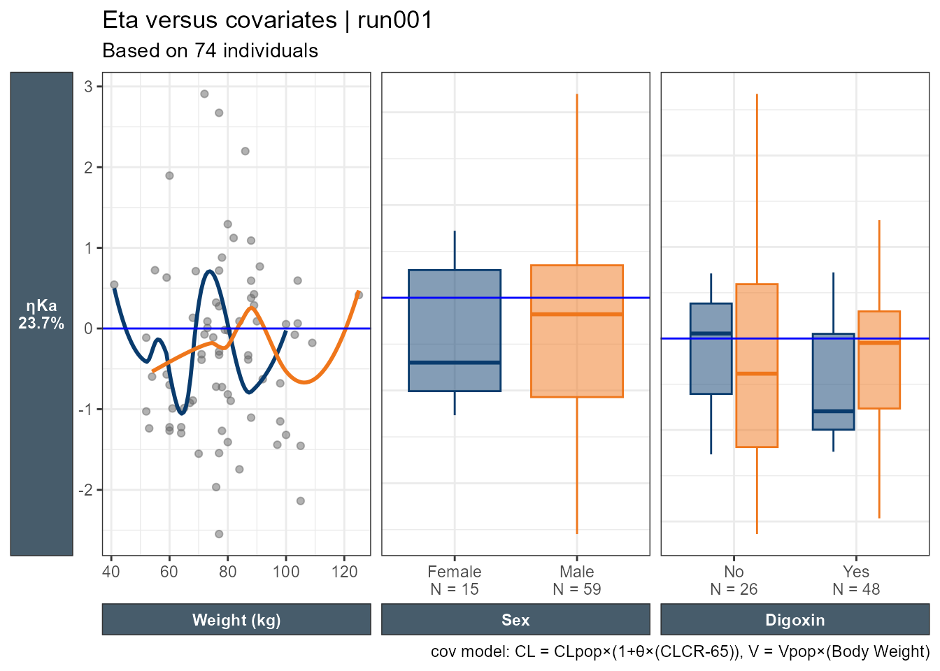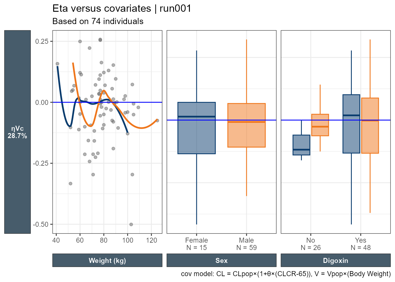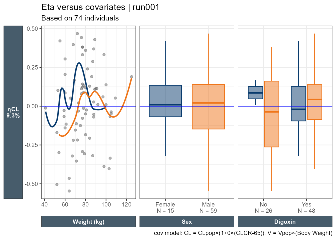A nice touch seen in the Eta versus categorical covriates plot is that out of the box we have the N by category shown on the x axis.