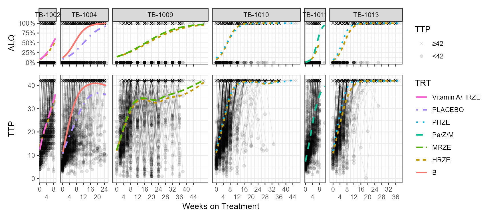 A while back, I did a consulting project for the critical path institute (CPATH) that led to the creation of a shiny app to explore Time to Positivity (TTP) in Tuberculosis Trials. This was an example where the development of an interactive tool enabled collaboration by removing technical barriers and by enabling all stake holders to contribute. The app source code is publicly available at this github repo and is currently deployed online at this link https://pharmacometrics.shinyapps.io/TBTTPEXPLORE